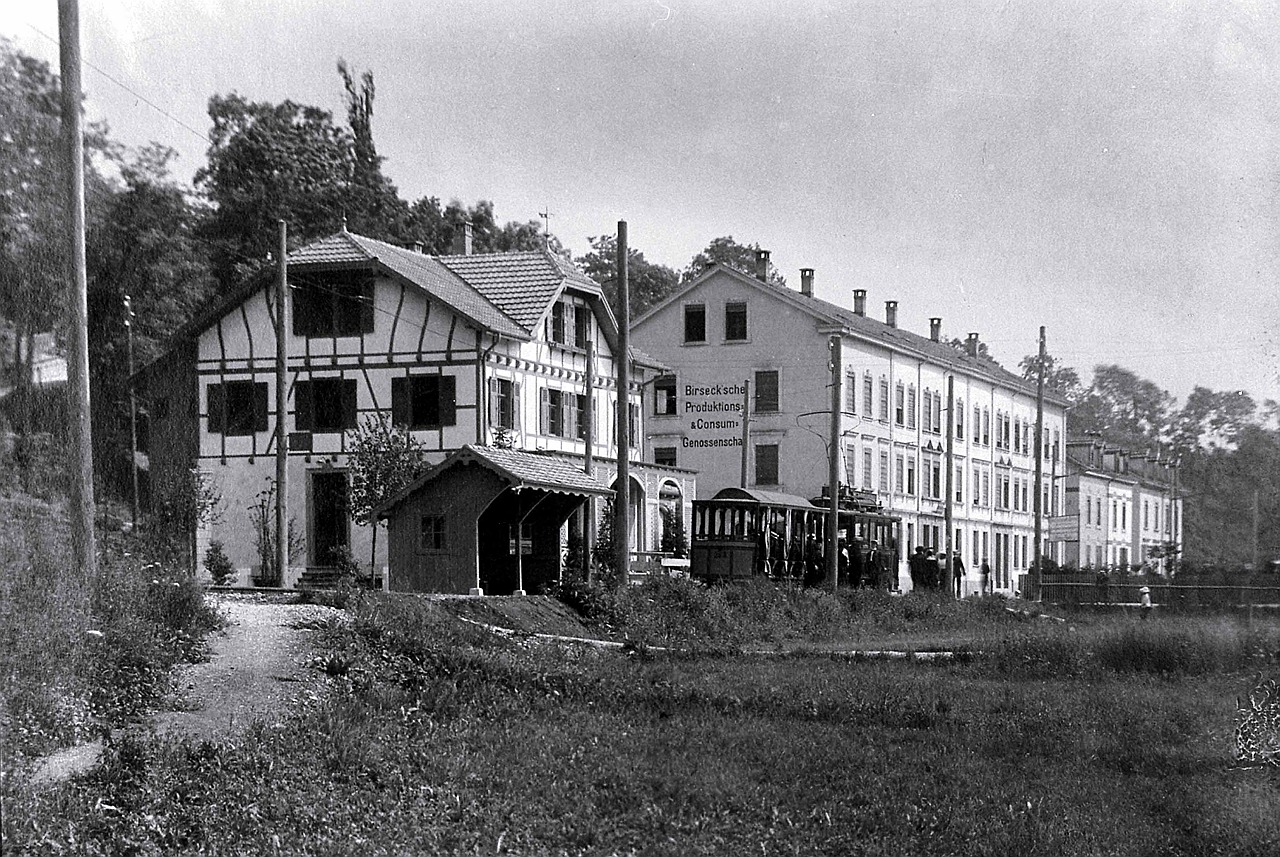1902 wird die Strassenbahn Basel-Arlesheim (Birseckbahn) durch das neue Industriequartier gebaut. Entlang der Birseckbahn dehnt sich Münchenstein weiter in Richtung Basel aus. Schon bald nach Betriebseröffnung muss die Streckenkapazität durch Ausbau auf Doppelspur erhöht werden, der Abschnitt Birsbrücke-Münchenstein macht 1903 den Anfang.