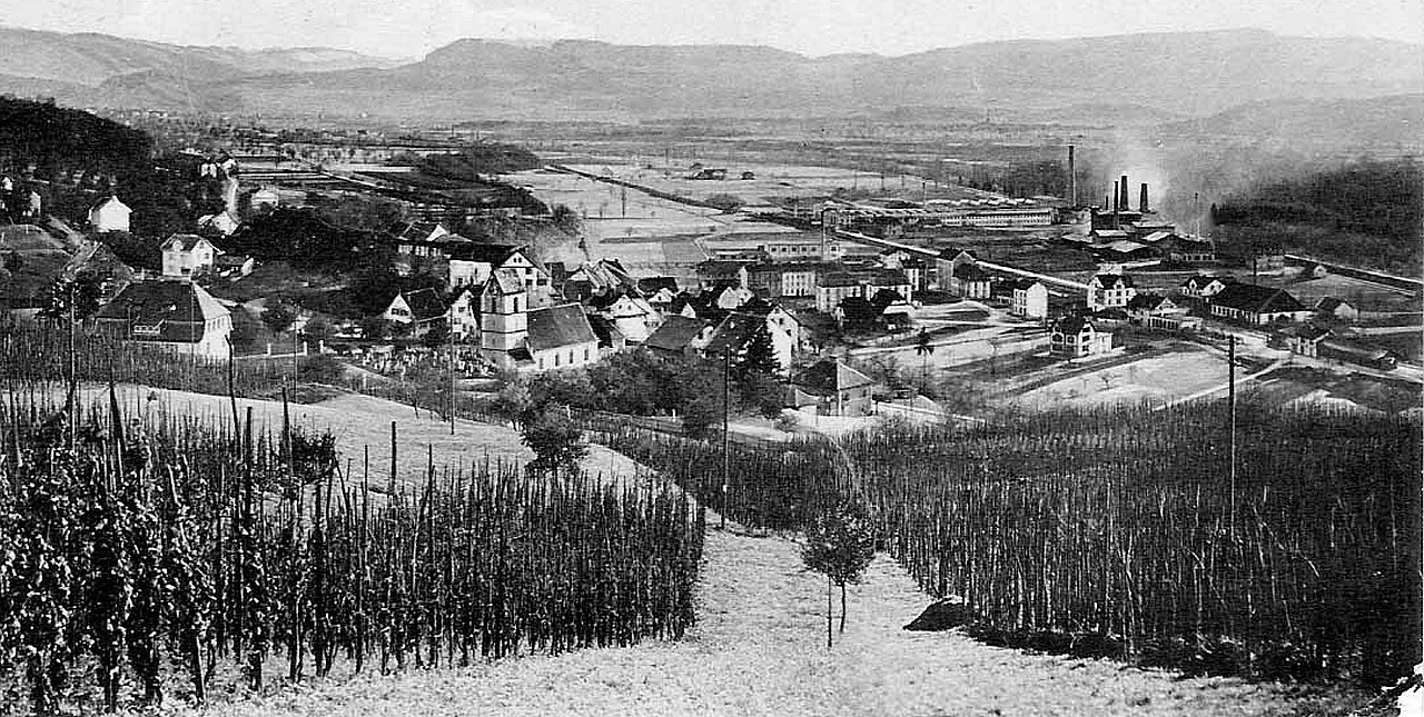 Mit der Eröffnung der Bahnstrecke Basel-Delsberg 1875 siedeln sich im Umkreis der Bahnstation Münchenstein zahlreiche Fabriken an.