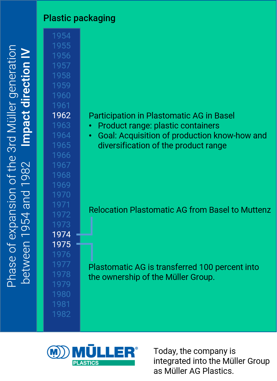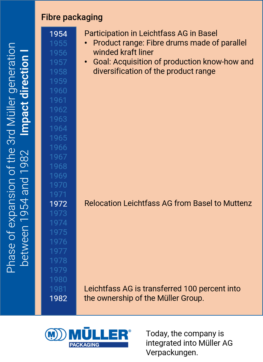 1954 marks the beginning of a phase of investment and risk-taking. Ruedi and Hans Müller wanted to broaden the base of their industrial packaging business.