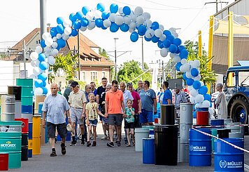 Am 18. Juni 2022 hat die Müller AG Verpackungen in Münchenstein ihre Türen geöffnet für Kunden, Geschäftspartner, Familienmitglieder und die breite Öffentlichkeit. Gegen 3‘000 Besucherinnen und Besucher haben – trotz ausserordentlicher Hitze, die glühend 36 Grad erreichte – den Weg in die Tramstrasse gefunden. Die Stimmung war ausgelassen. Die Gäste zufrieden, auch wegen des Caterings der Eiche Metzgerei, Basel, welches keine Wünsche offenliess.