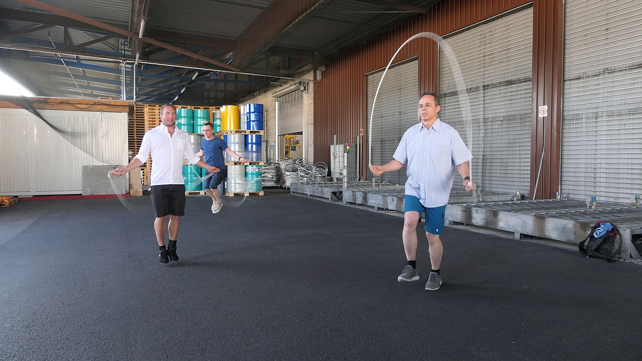 ![]() | «Ich finde es grossartig, dass unsere Firma solche Organisationen unterstützt. Die Aktion hat richtig Spass gemacht, und wir waren alle sehr motiviert, möglichst viele Sprünge zu schaffen», erzählt Beat Studer von Müller AG Verpackungen. |